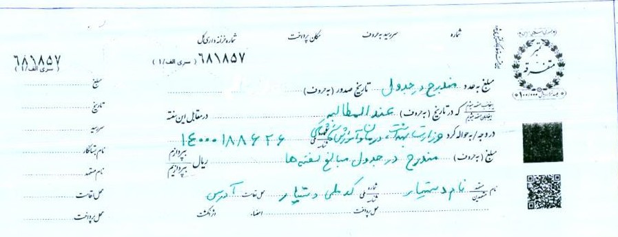 با عنایت به نامه شماره 500/3054/د مورخ ششم شهریورماه 1404 وزارتخانه مبالغ سفته برای مقطع فوق تخصصی در سال تحصیلی 1405-1404 به شرح جدول زیر می باشد. ضروری است پذیرفته شدگان محترم با توجه به سهمیه قبولی و نوع استخدام نسبت به تهیه سفته و تنظیم سند تعهد محضری اقدام و تصاویر واضح آن را در سایت ثبت نام بارگذازی نمایند و برای تایید نهایی اصل سند تعهد محضری و سفته را به آموزش کل واقع در بلوار کشاورز - نبش خیابان قدس - ساختمان مرکزی دانشگاه علوم پزشکی تهران - طبقه هفتم اتاق 702 اداره تخصصی و فوق تخصصی ارائه نمایند.